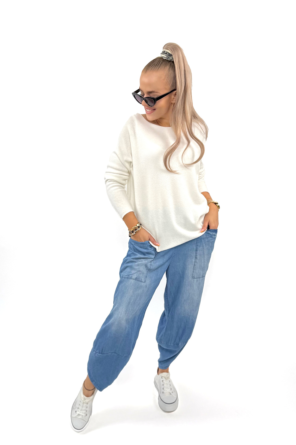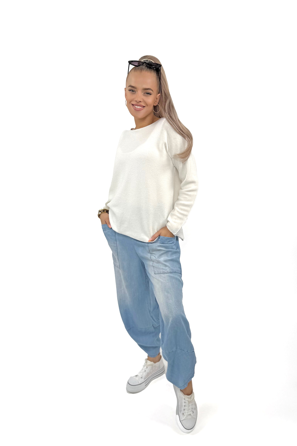 Na první pohled působí jako džíny, ale pocitově je to nebe na nohou 😍. Hodí se k tričkům, halenkám, tílkům i džínovým bundičkám – prostě univerzální kousek pro každou příležitost.