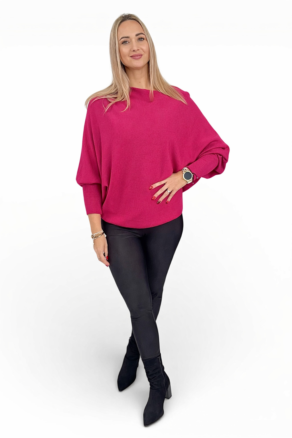 Bella je ten typ svetru, který oblékneš a už ho nebudeš chtít sundat. Volný střih, netopýří rukávy a příjemně pružný materiál z něj dělají ideální kousek na každý den – do práce, na kávu i na pohodový víkend ☕✨