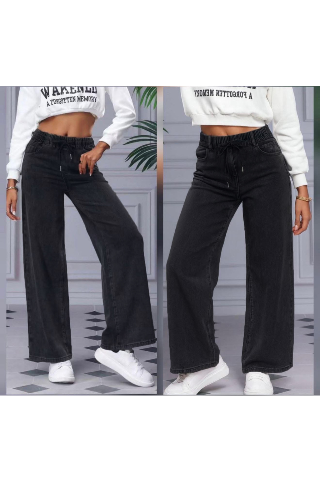 Černé wide leg džíny s extra pružným materiálem a pohodlnou gumou v pase. Moderní střih, který lichotí postavě a drží komfort celý den.