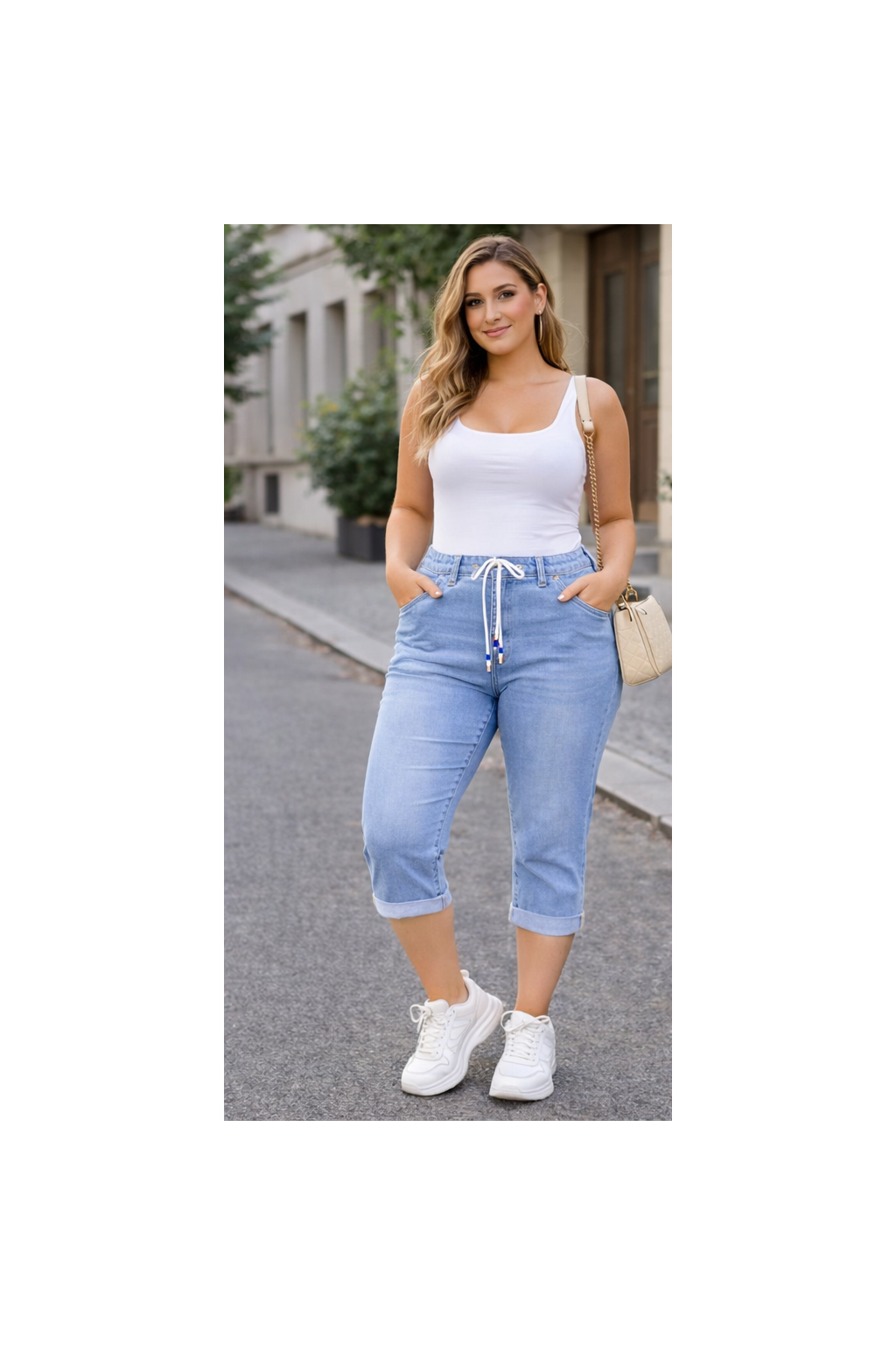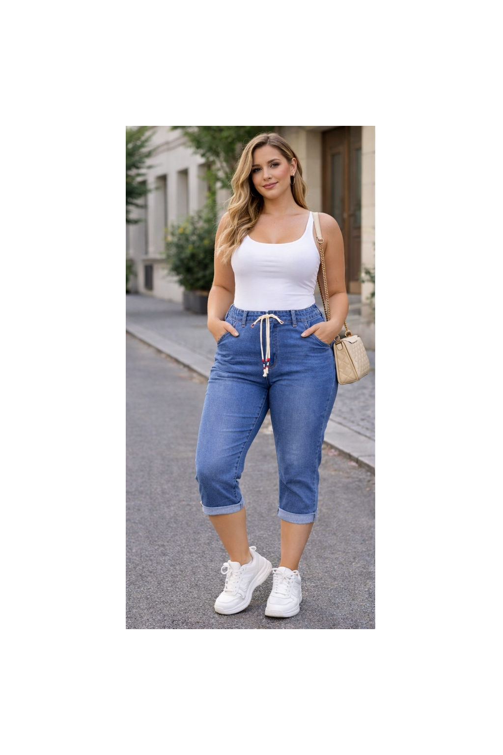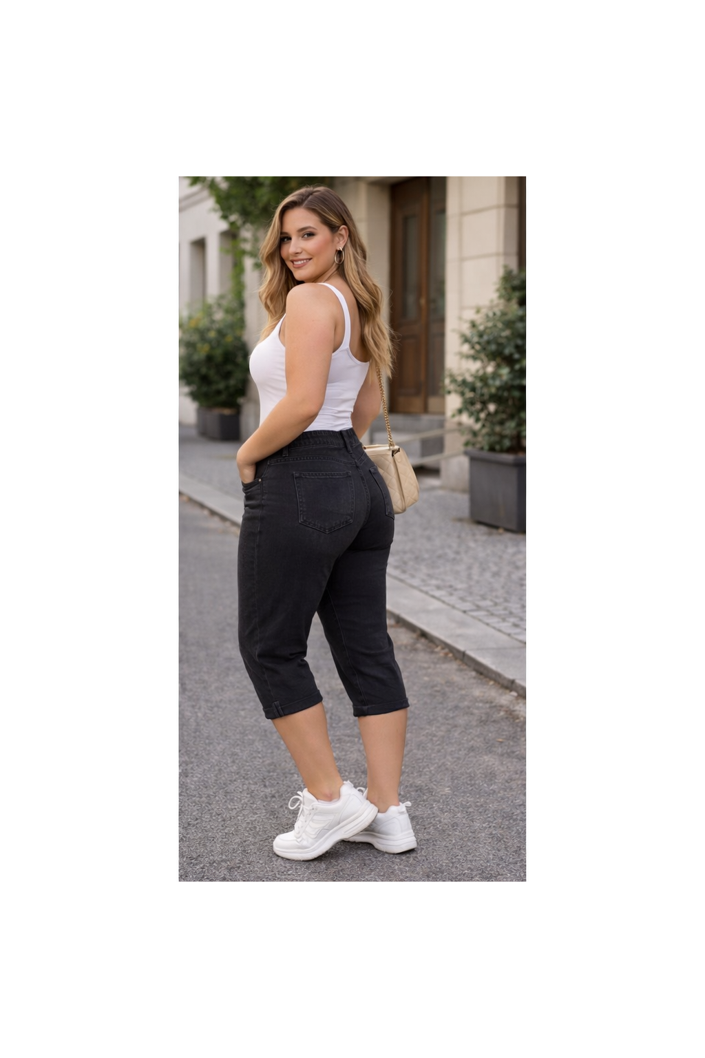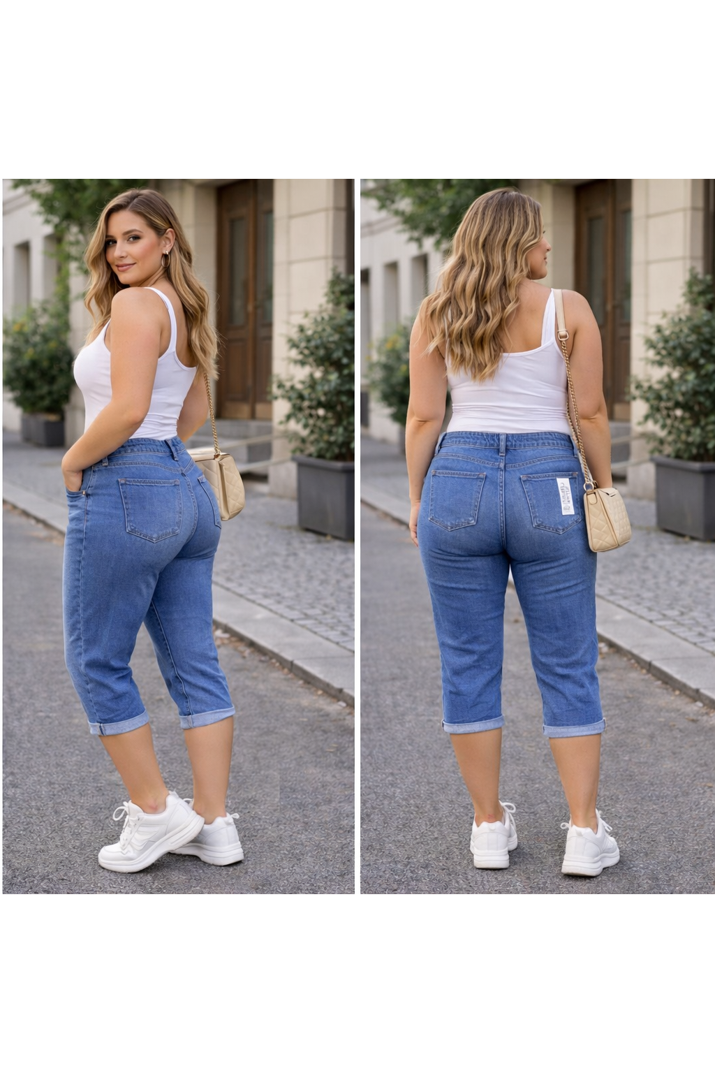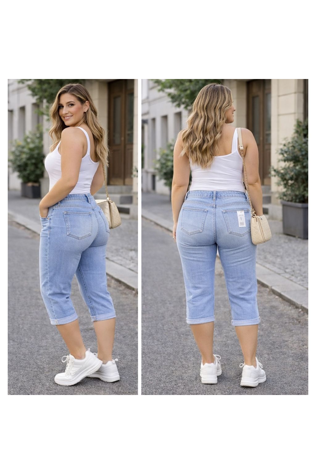 Dámské 3/4 džíny s push-up efektem jsou ideální volbou pro jarní a letní sezónu. Díky elastickému „máslovému“ denimu se perfektně přizpůsobí postavě, zvýrazní křivky a zároveň zajistí maximální pohodlí při nošení.