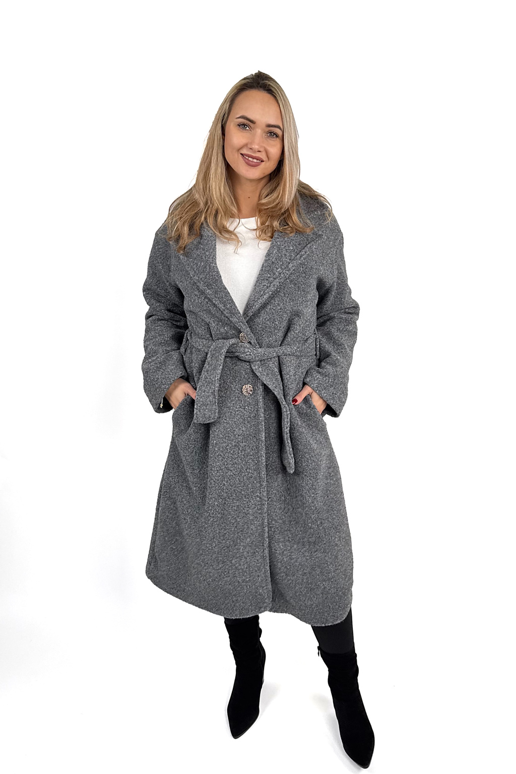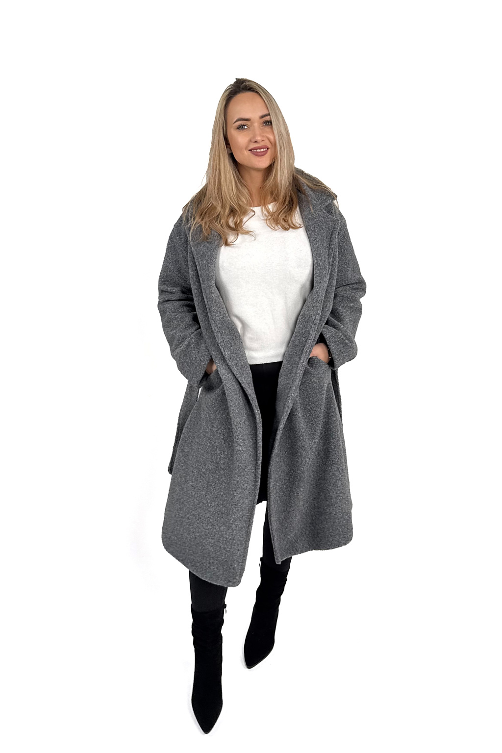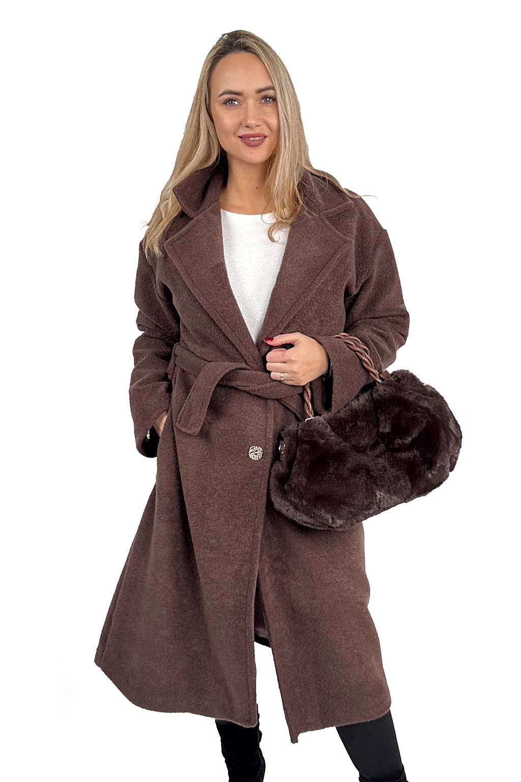 Díky příjemnému materiálu (100% polyester) je kabát hřejivý, drží tvar a zároveň působí luxusně. Skvěle se kombinuje s džínami, šaty i elegantními kalhotami.