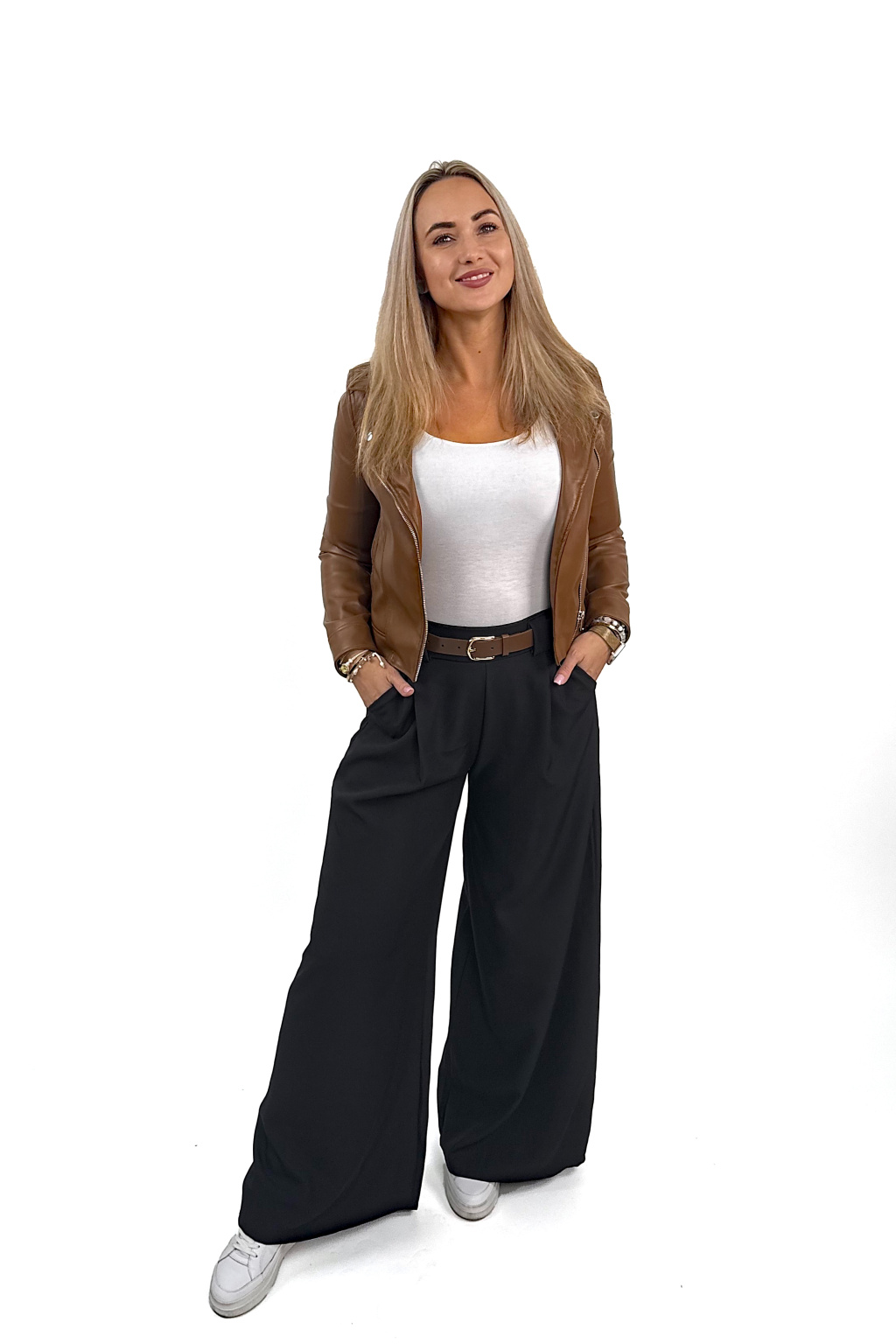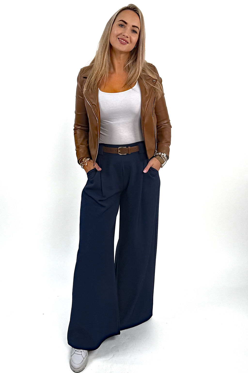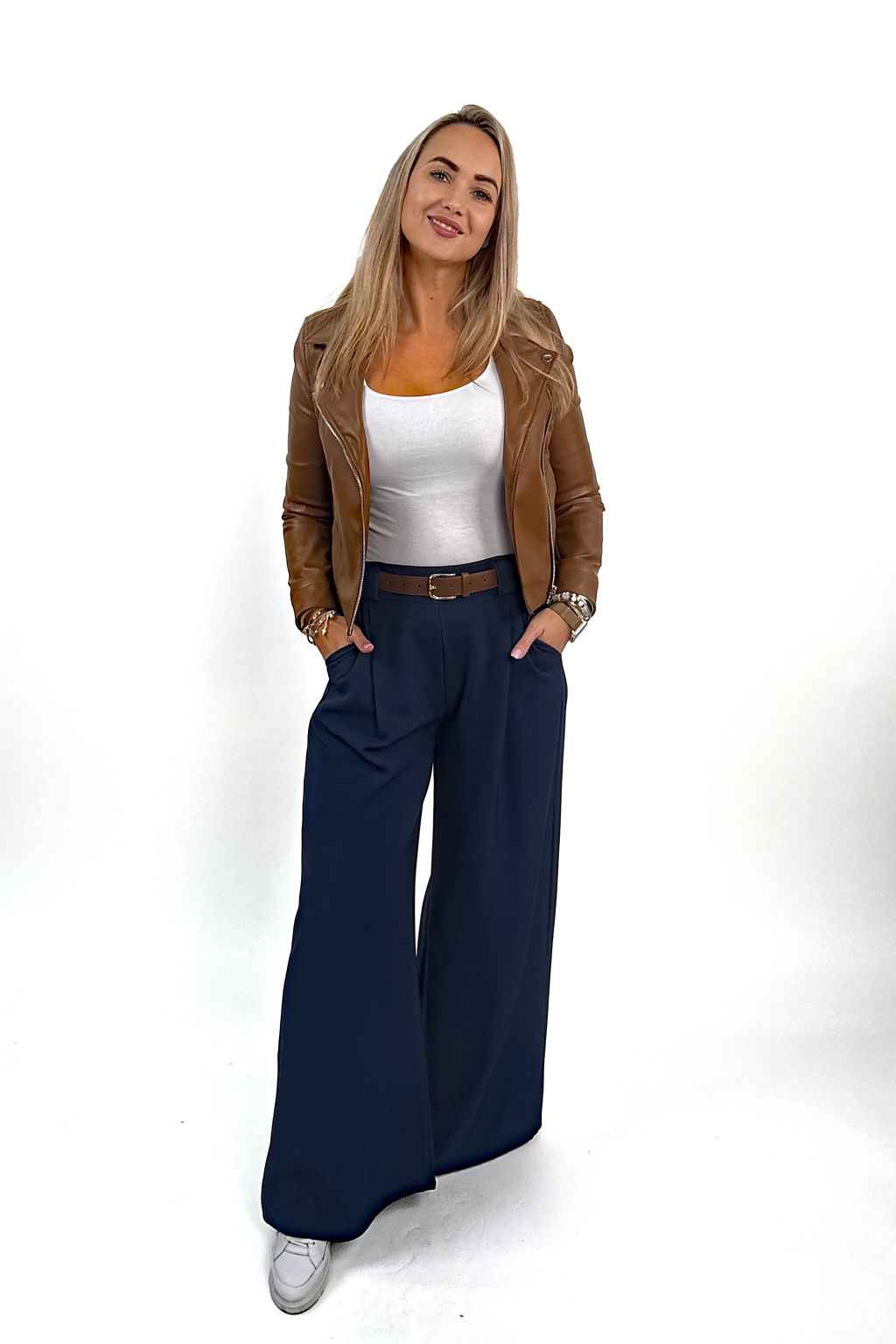 Mají nádherně široké nohavice, které při chůzi splývají a vytvářejí luxusní, ženský efekt. Vysoký pas jemně stáhne bříško, krásně tvaruje postavu a dodá siluetě upravený vzhled. 💛