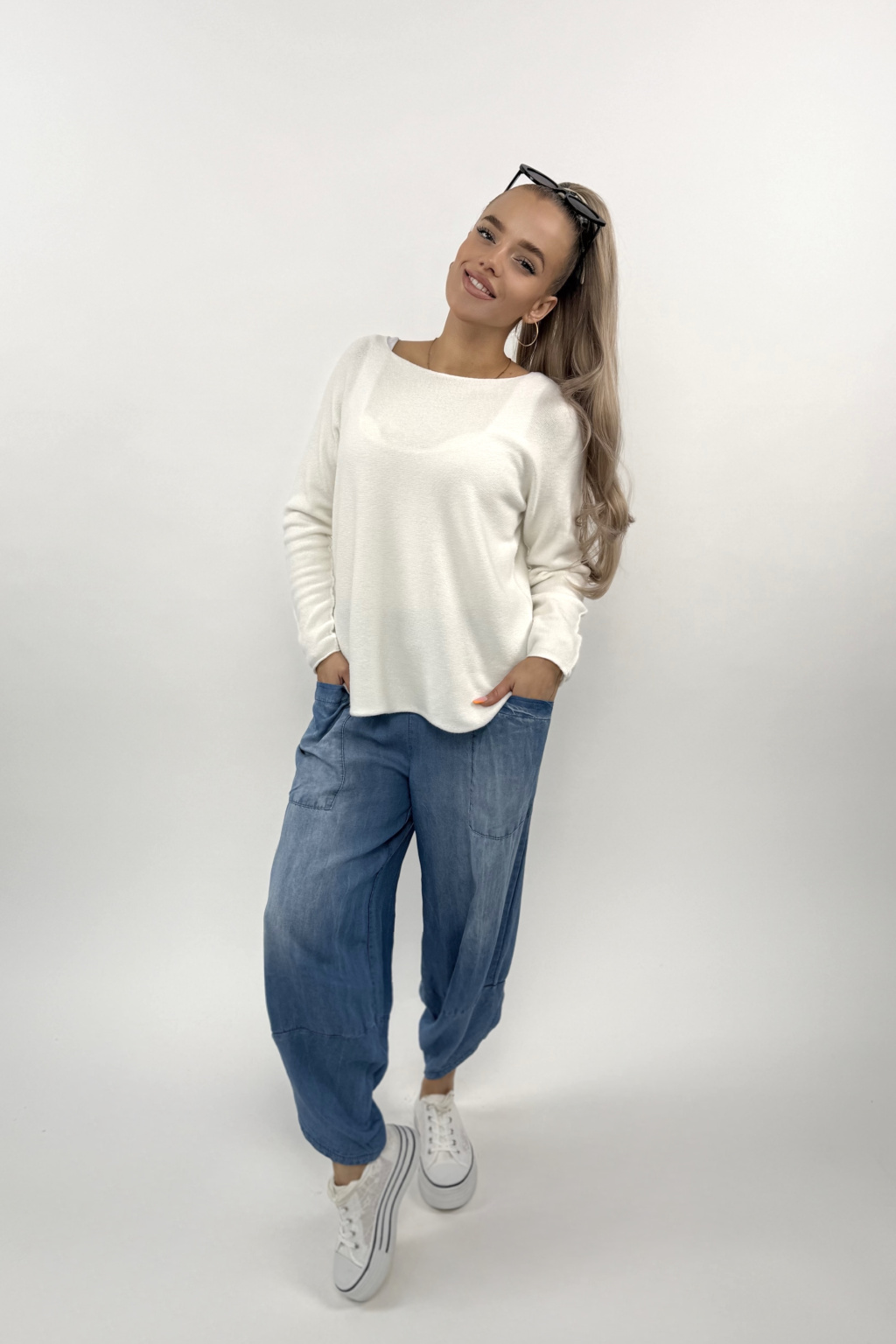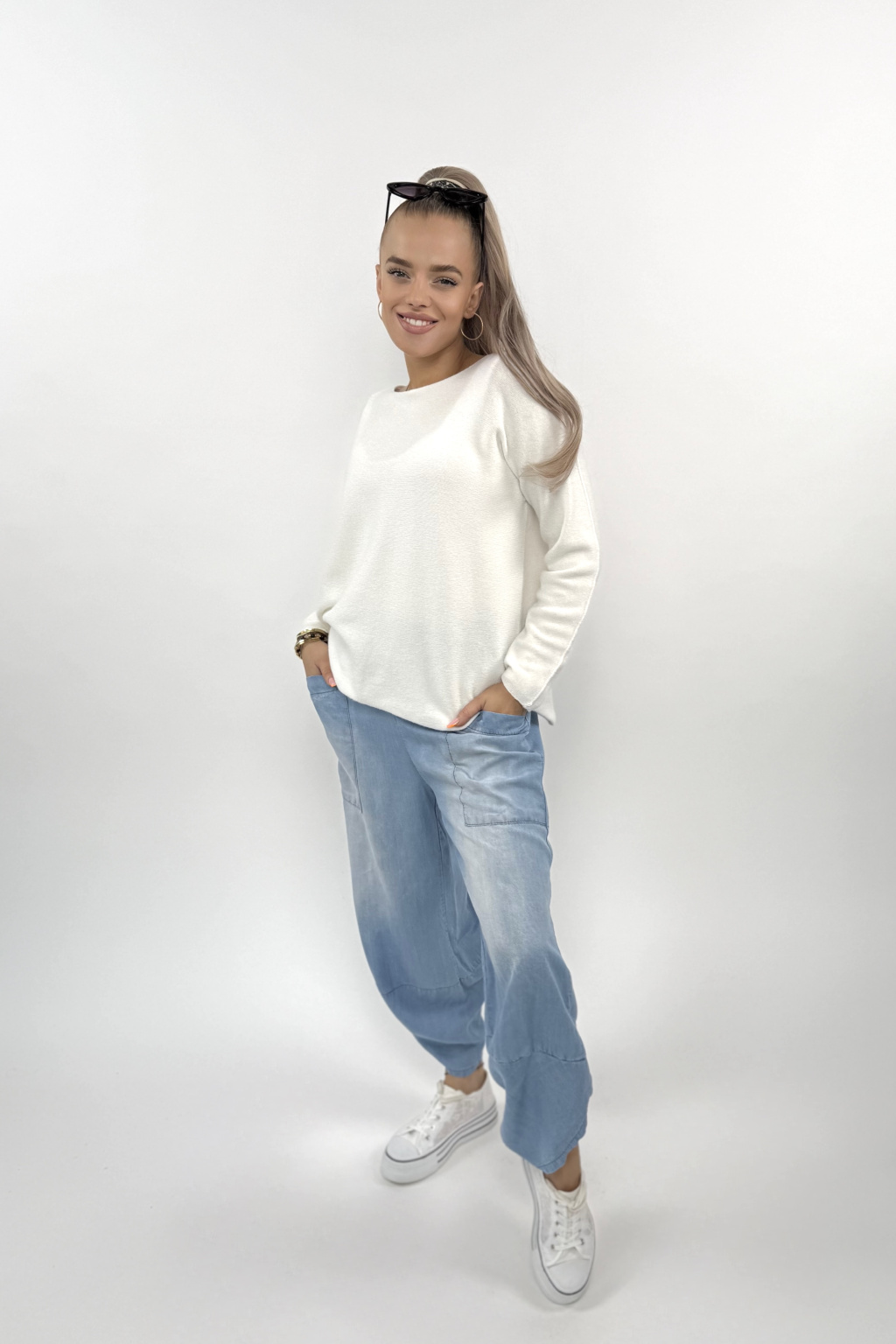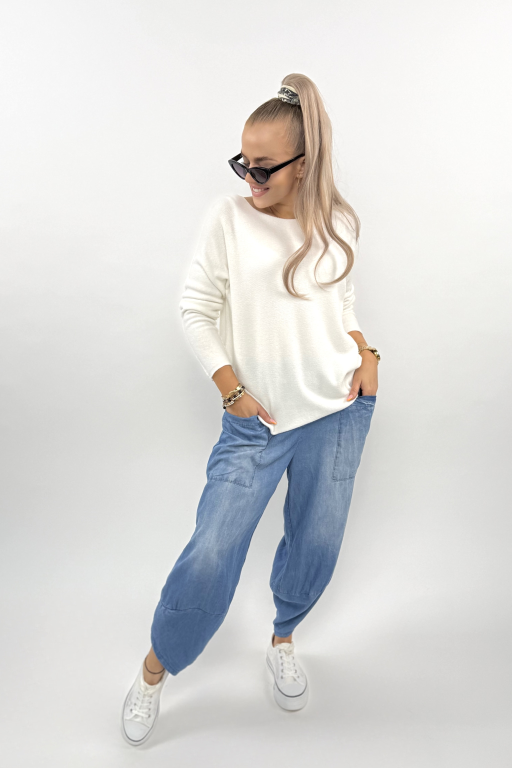 Na první pohled působí jako džíny, ale pocitově je to nebe na nohou 😍. Hodí se k tričkům, halenkám, tílkům i džínovým bundičkám – prostě univerzální kousek pro každou příležitost.