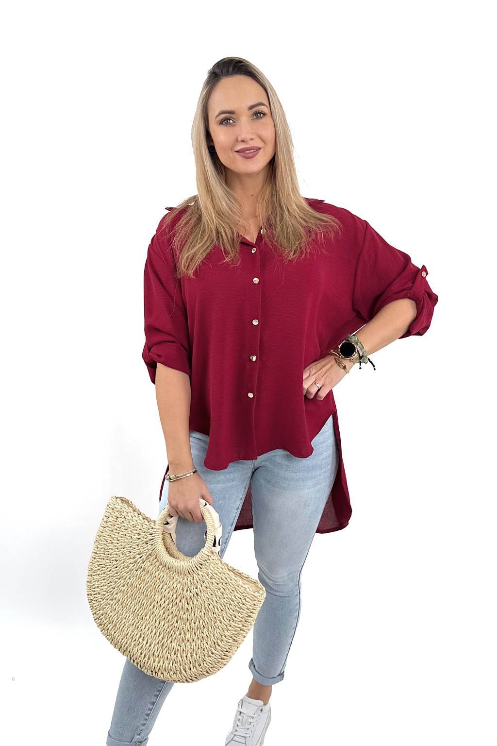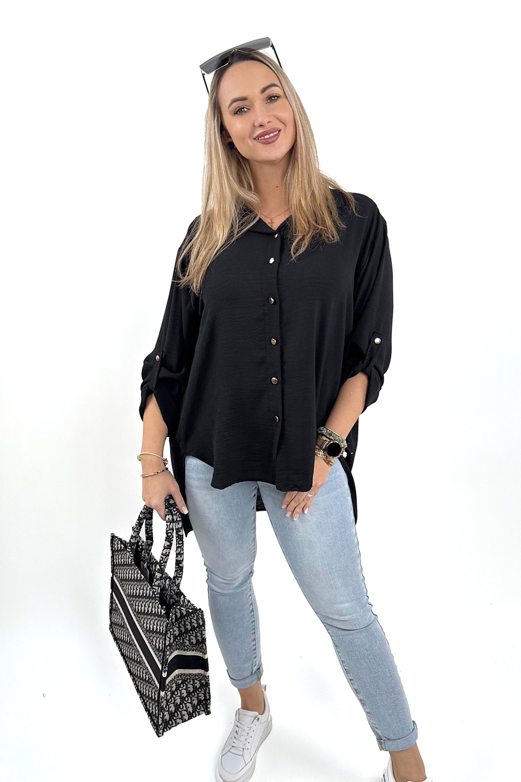 Materiál je lehký, splývavý a příjemný na nošení – ideální do práce, do města i na běžný den. Stačí zastrčit přední část lehce do kalhot a máš trendy outfit během pár sekund 💃