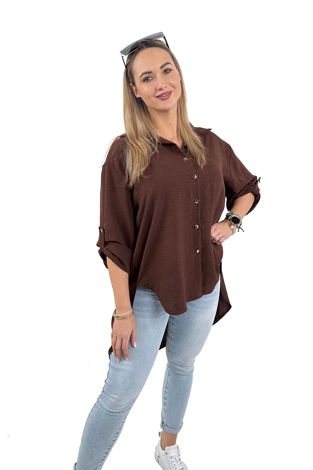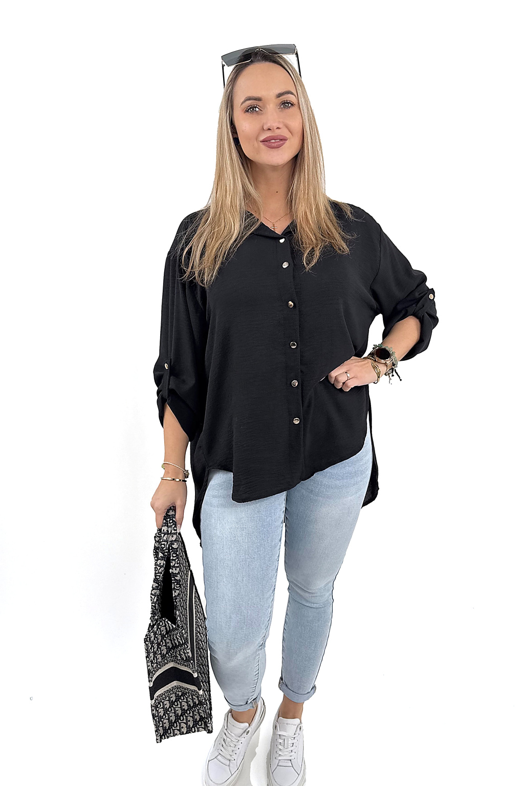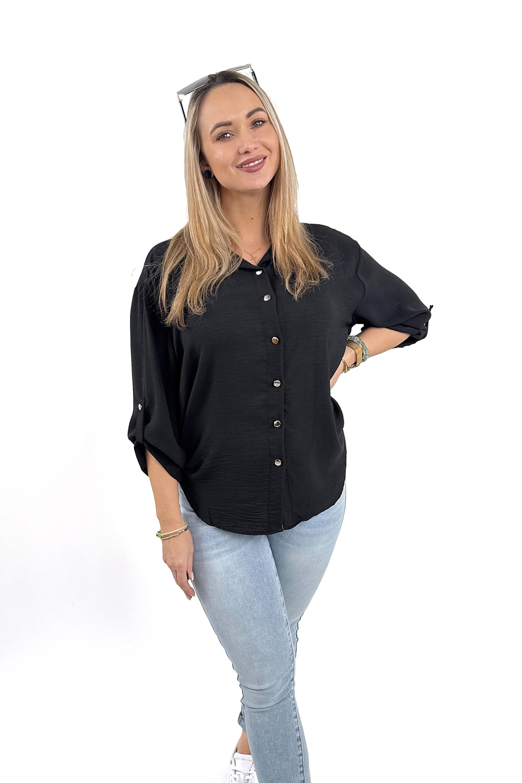 Lehká, vzdušná a nádherně splývavá košile se zlatými knoflíky, která lichotí každé postavě 💋