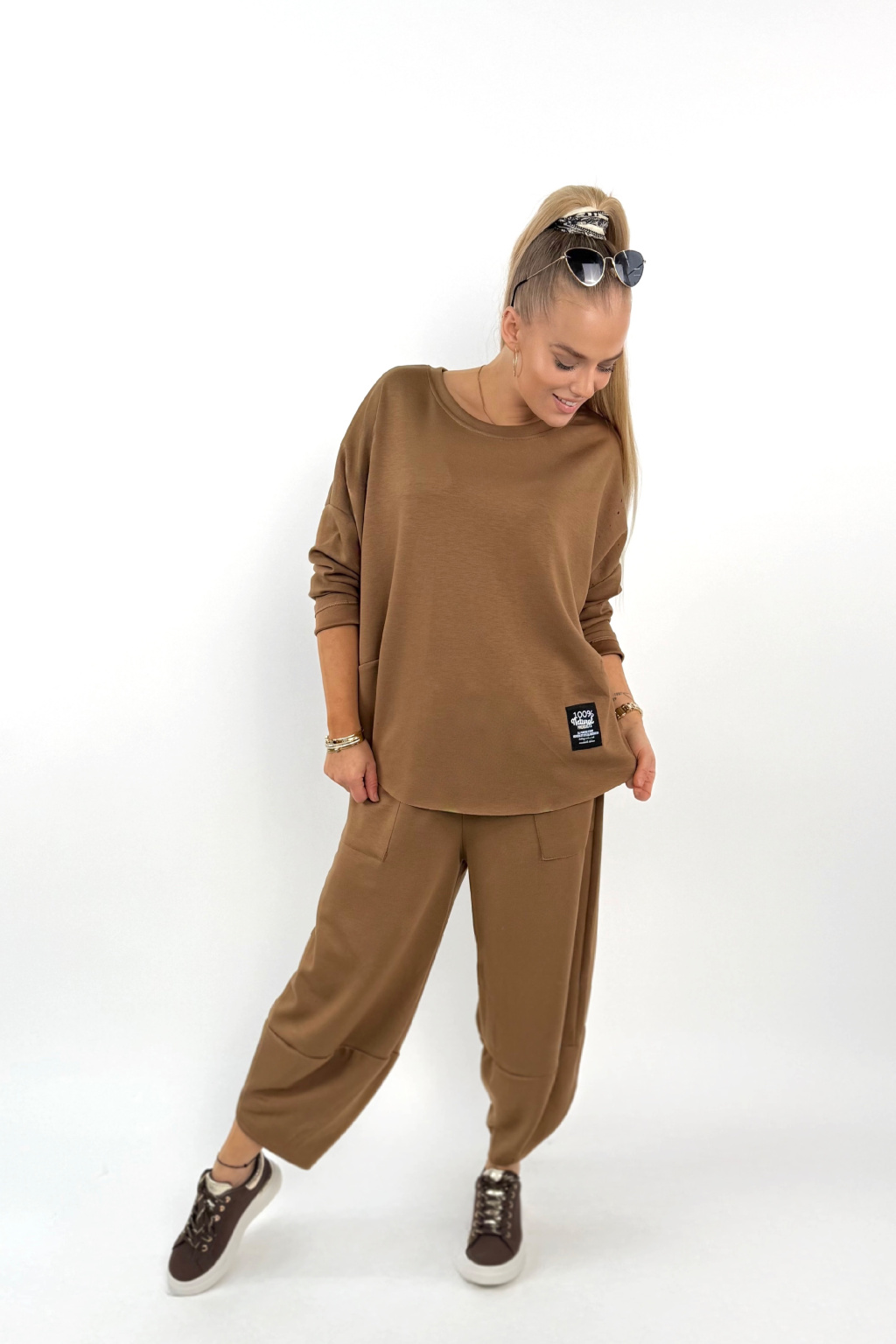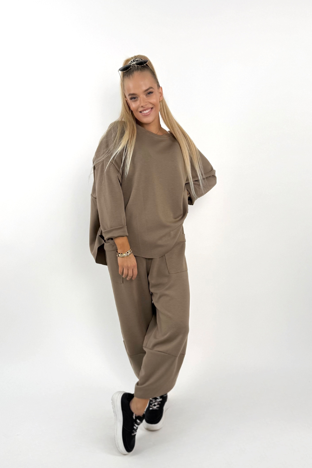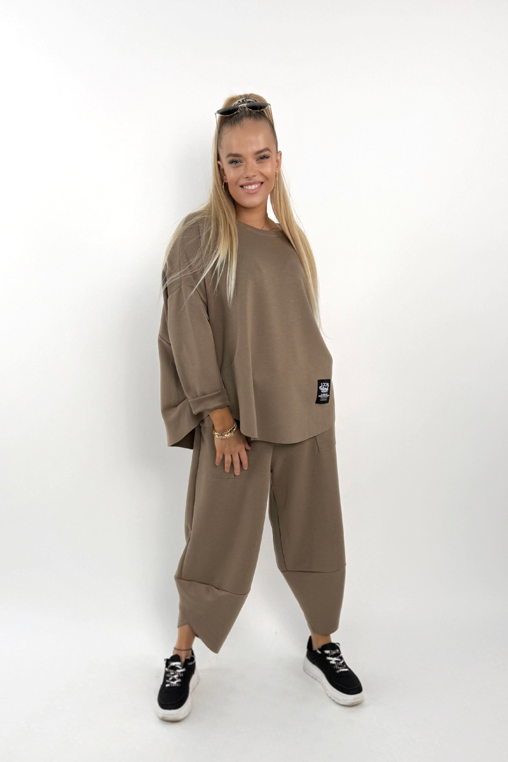 Komplet Bloom 💞🍂 je ten typ outfitu, který si zamiluješ na první oblečení. Tulipánové kalhoty ve stylu vašich milovaných Trendy + volnější mikča s prodlouženým zadním dílem = perfektní kombinace pohodlí a stylu 🫶. Materiál je máslově hebký, lehoučký a ideální na podzimní dny. Navíc můžeš nosit kalhoty i mikču samostatně, takže získáš hned několik outfitů v jednom 👏👏. Dostupný ve smetanové, hnědé, khaki, černé a cappuccino barvě. Kombinujte s našimi vestami a teniskami Wild.