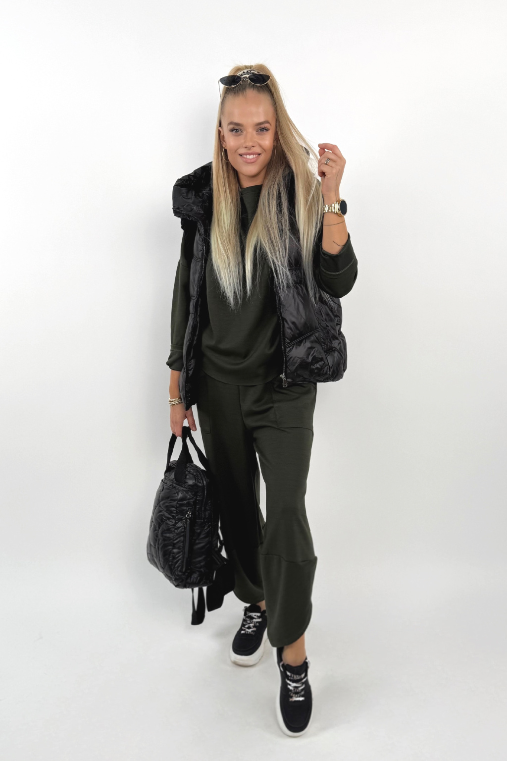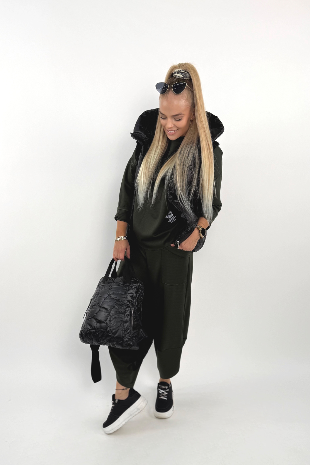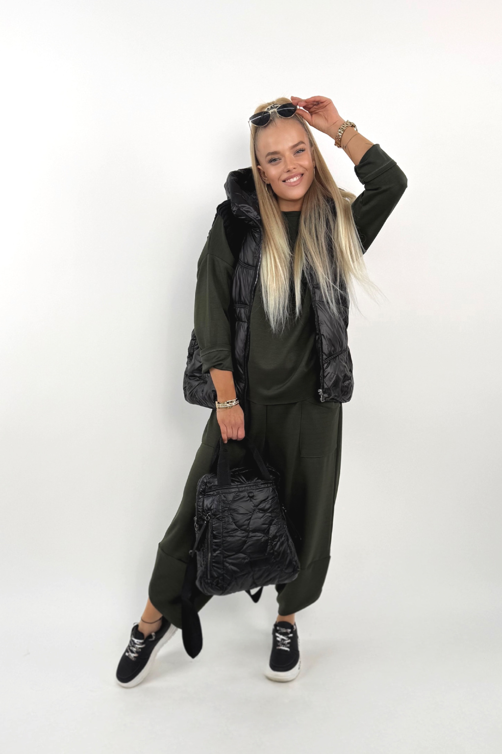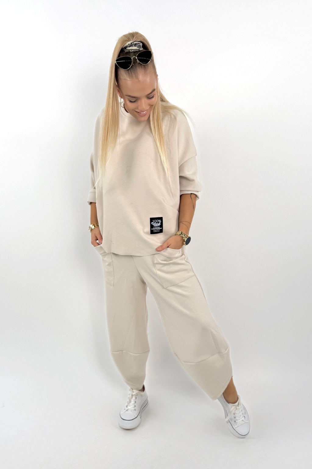 Komplet Bloom 💞🍂 je ten typ outfitu, který si zamiluješ na první oblečení. Tulipánové kalhoty ve stylu vašich milovaných Trendy + volnější mikča s prodlouženým zadním dílem = perfektní kombinace pohodlí a stylu 🫶. Materiál je máslově hebký, lehoučký a ideální na podzimní dny. Navíc můžeš nosit kalhoty i mikču samostatně, takže získáš hned několik outfitů v jednom 👏👏. Dostupný ve smetanové, hnědé, khaki, černé a cappuccino barvě. Kombinujte s našimi vestami a teniskami Wild.