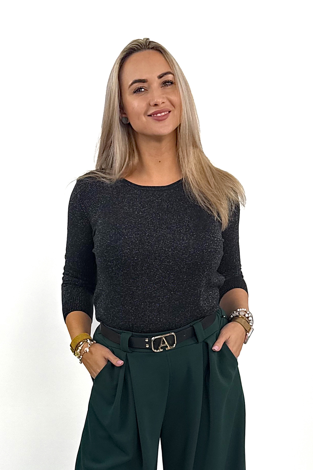 Je to přesně ten vánoční svetr, který dodá outfitu elegantní a slavnostní vzhled, ať už míříte na vánoční večírek, rodinné focení nebo jen chcete oživit svůj zimní outfit jemným třpytem.