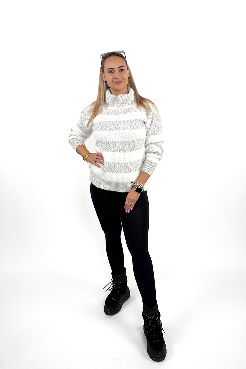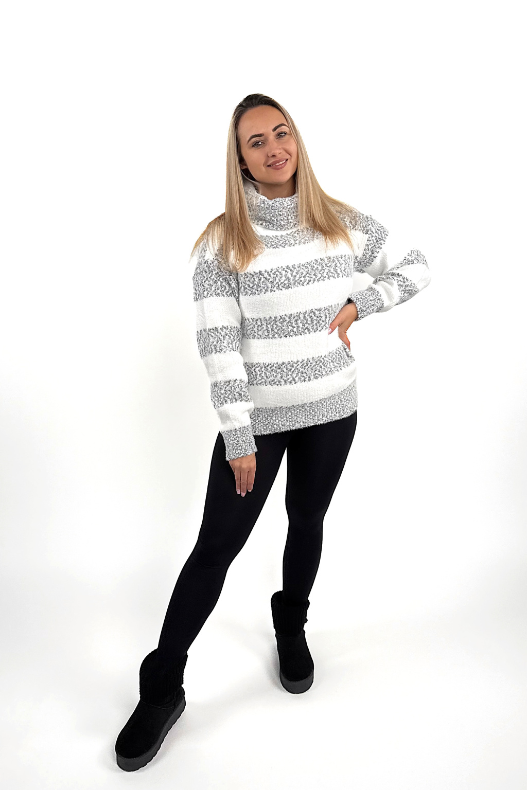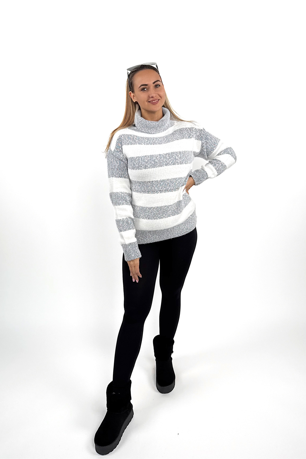 Má klasický rolák, který tě ochrání před zimou, a široké pruhy, díky kterým působí hravě i stylově 💫