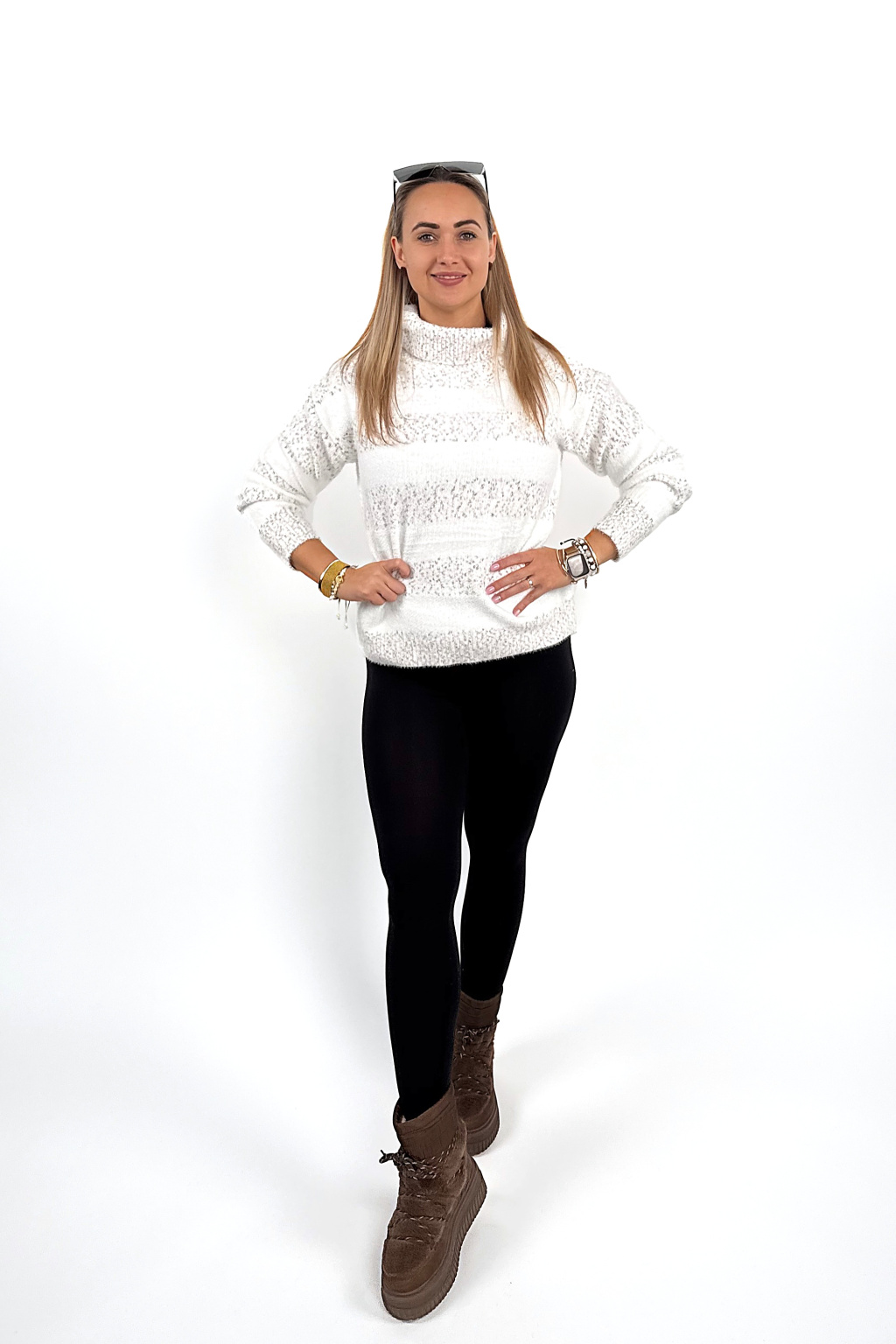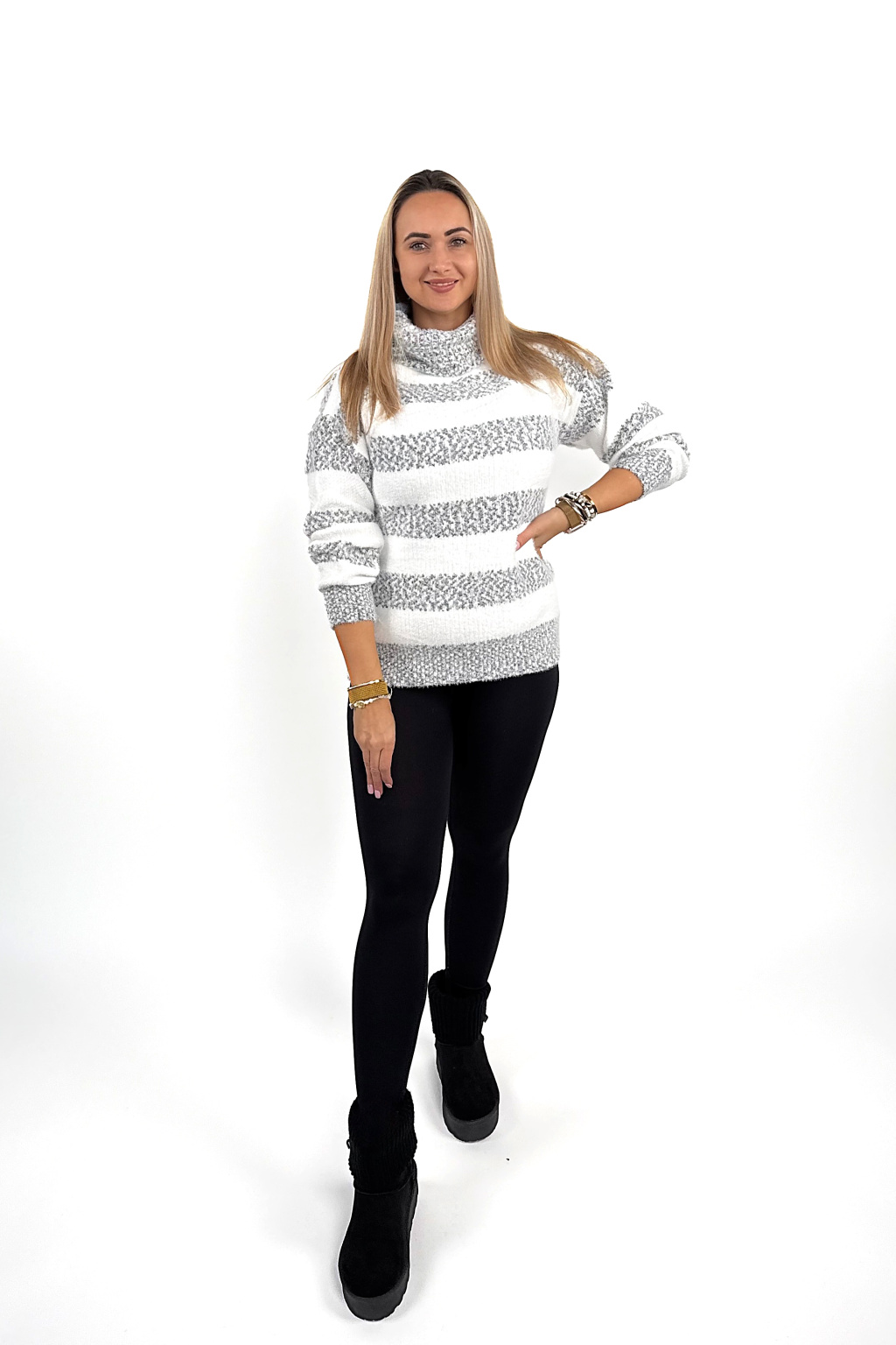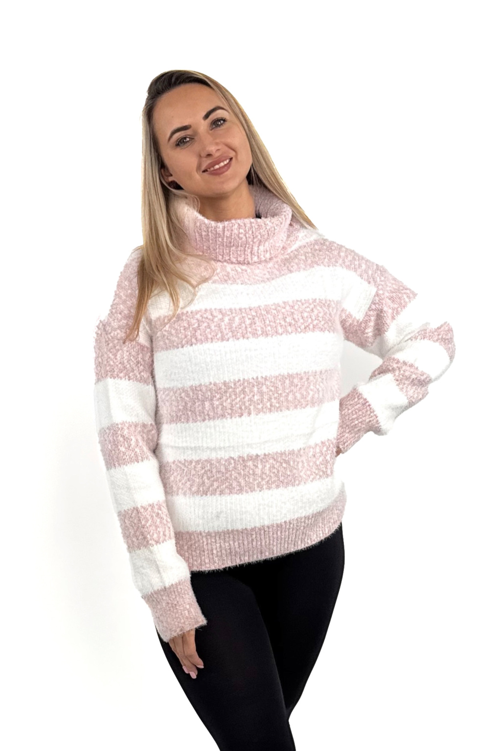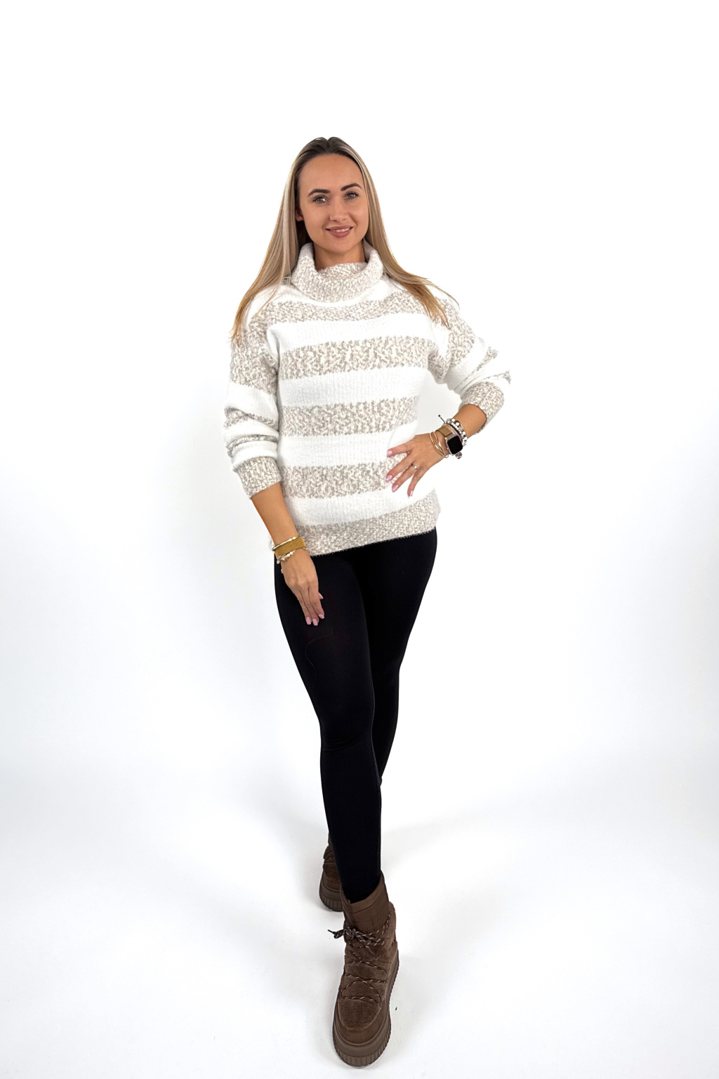 Má klasický rolák, který tě ochrání před zimou, a široké pruhy, díky kterým působí hravě i stylově 💫
