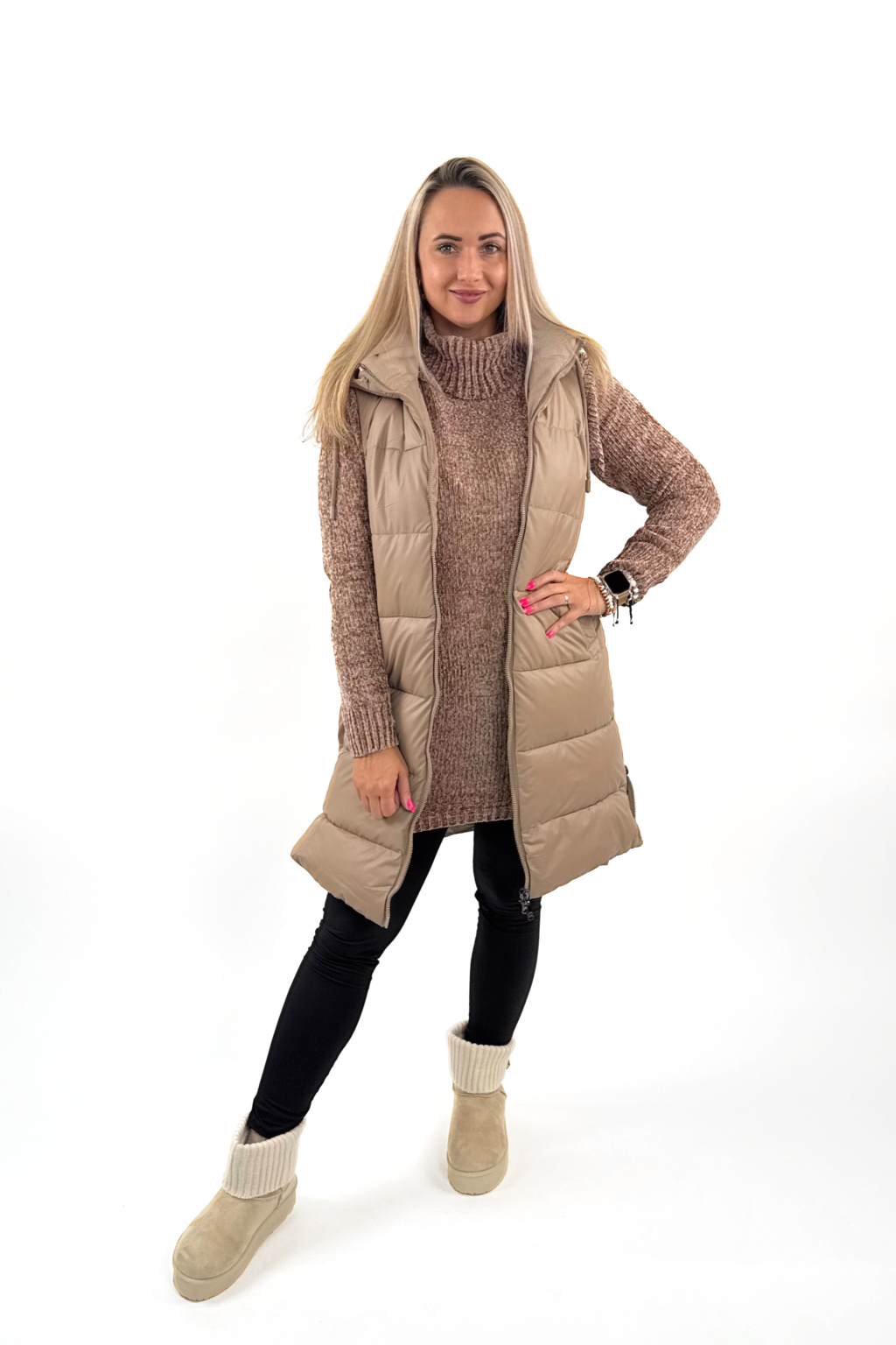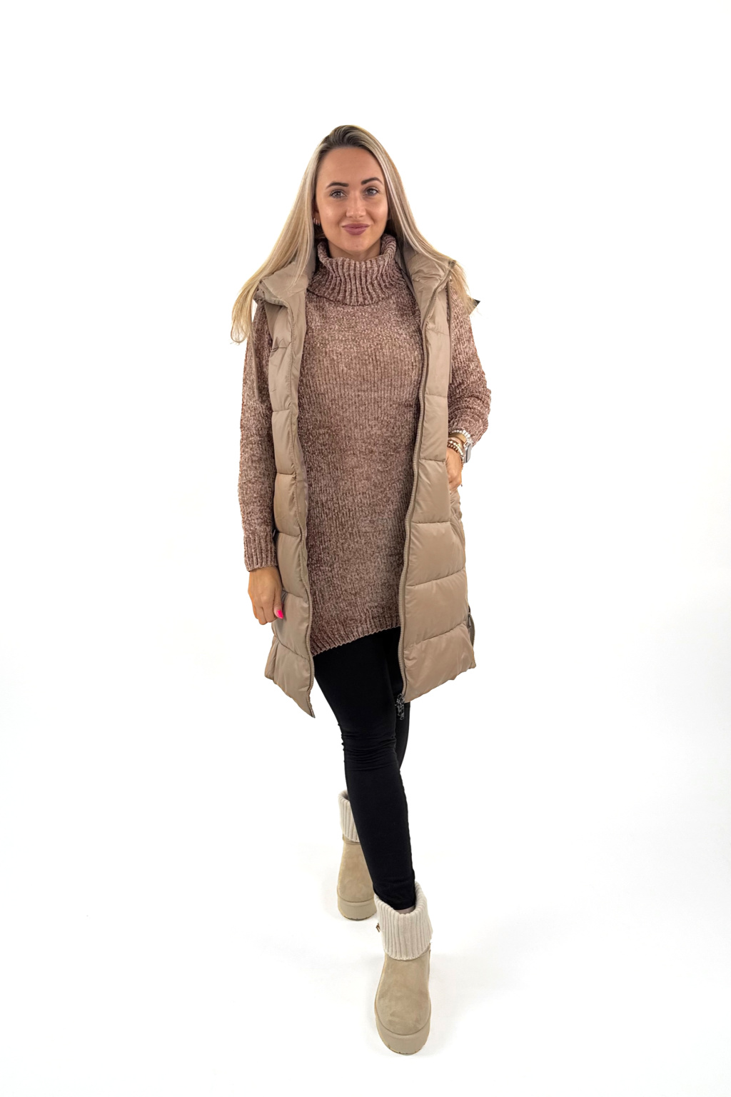 Délka 90 cm, prsa 2× 65–90 cm – ideální délka ke kozačkám nebo vysokým botkám 🤎