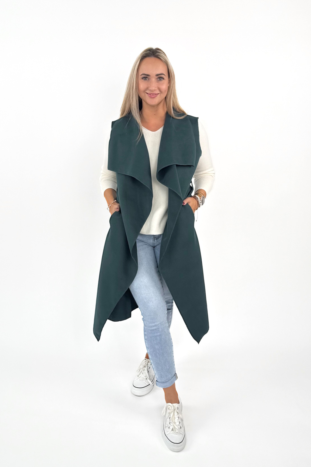 👜 Praktické detaily – funkční kapsy a výrazné klopy dodají vestě chic šmrnc.