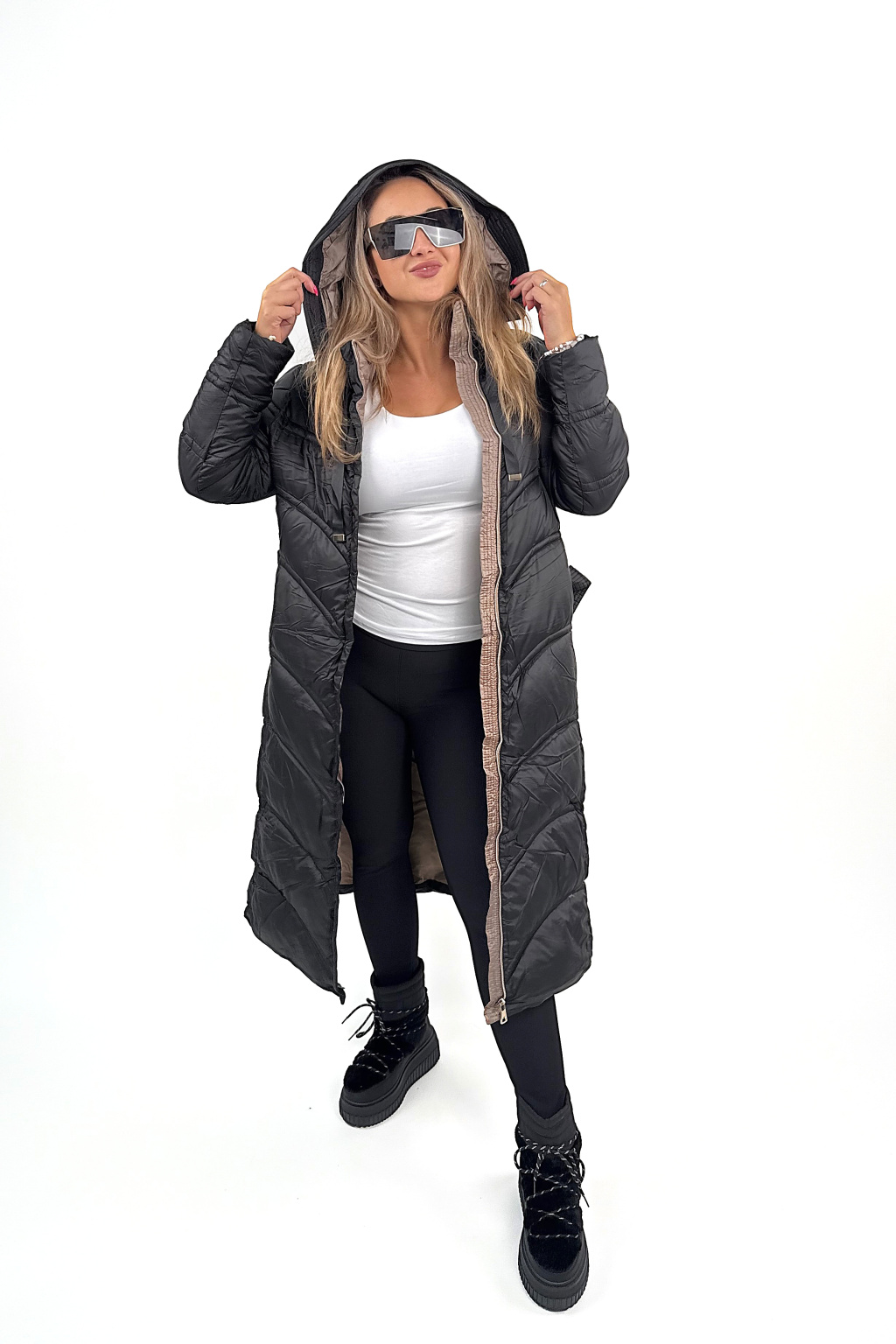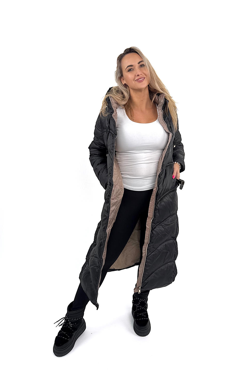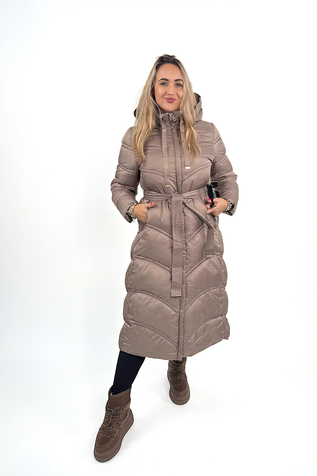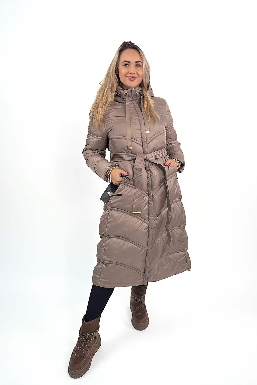 Megan je jeden z těch kousků, co vás dokonale zahřejou, ale zároveň vypadaj fakt stylově. Krásně tvaruje postavu díky prošívání, který opticky zužuje, a ten pásek v pase? Dokonale podtrhne siluetu! 💃