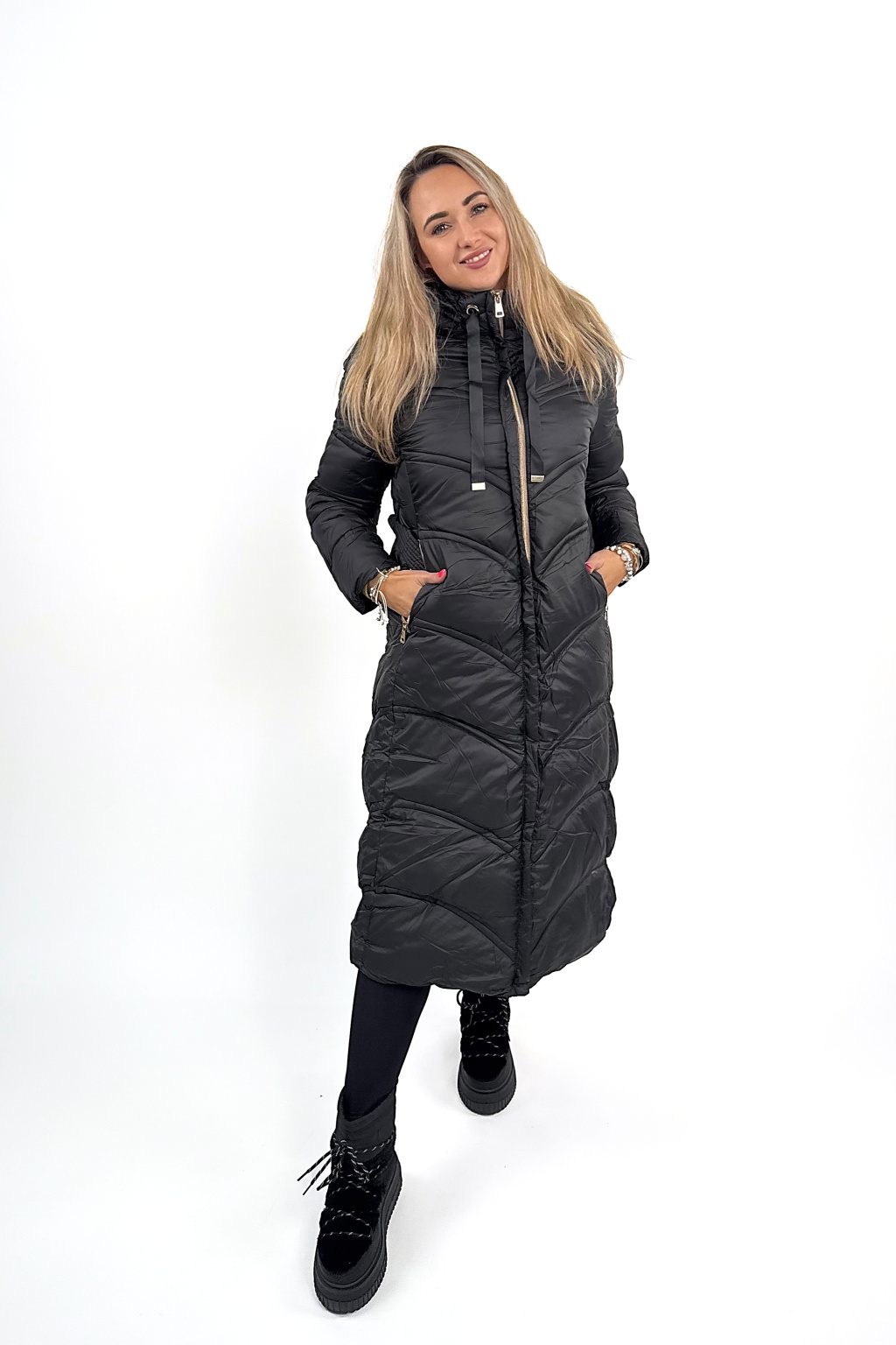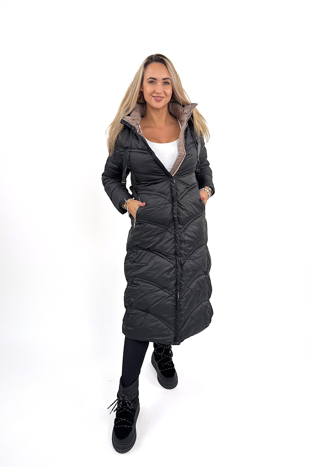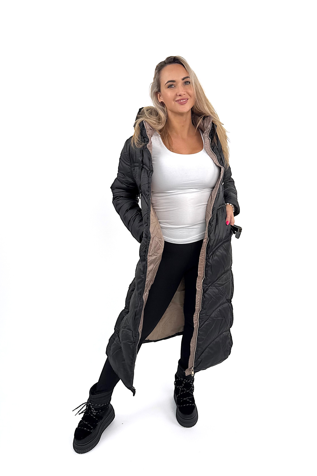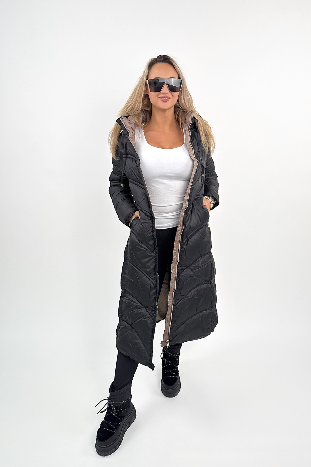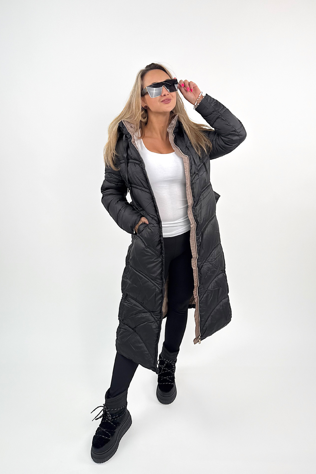 Megan je jeden z těch kousků, co vás dokonale zahřejou, ale zároveň vypadaj fakt stylově. Krásně tvaruje postavu díky prošívání, který opticky zužuje, a ten pásek v pase? Dokonale podtrhne siluetu! 💃